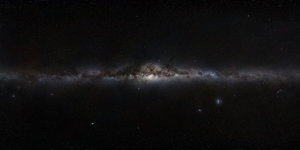 Toate stelele din galaxie se văd pe cerul nostru, pentru că ne aflâm în Galaxie, ca o bandă luminoasă subțire care înconjoară cerul. O numim „Calea Lactee” și o vedem tăiată de o bandă întunecată care este de fapt praf opac luminii stelelor situate mai departe. Știm că ne aflăm în planul discului stelar pentru banda de praf taie Calea Lactee în două părți egale ca grosime.