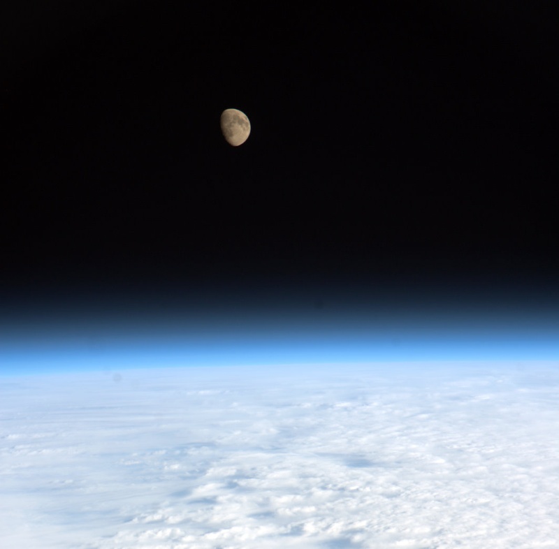 Imaginea astronautului Paolo Nespoli, aflat în prezent la serviciu pe Stația Spațială Internațională la numai 400 km deasupra capetelor noastre, ne arată pelicula fină de gaze numită de noi „atmosferă” care permite existența vieții așa cum o știm. Luna însă este gălbuie, fără atmosferă, dar are un rol important: menține (aproape) neschimbată axa de rotație a planetei noastre. Fără ea probabil viața ar fi evoluat altfel (sau de loc).