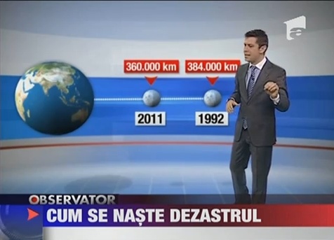 Cea mai ciudată treabă a fost reprezentarea în mass-media a sistemului Pâmânt-Luna la scară. Dacă ar fi făcut-o bine, oamenii și-ar fi dat seama dintr-o privire că apropierea Lunii nu înseamnă mai nimic comparată cu distanța până la Pământ (bineînțeles că nu și-au dorit asta).