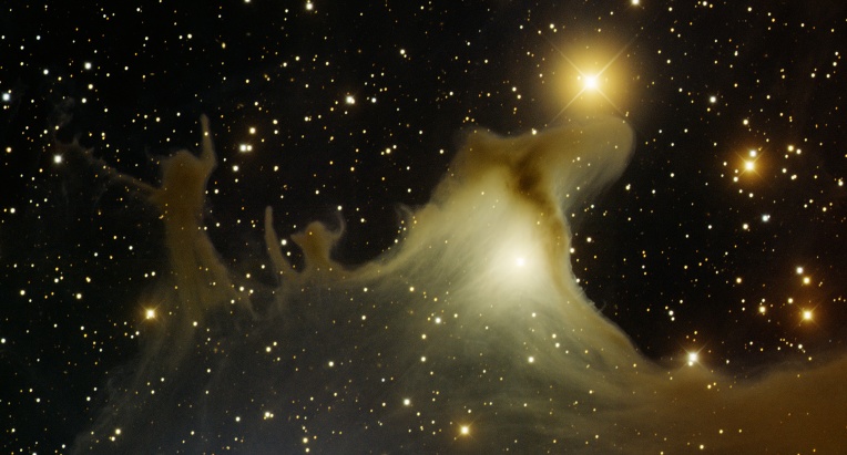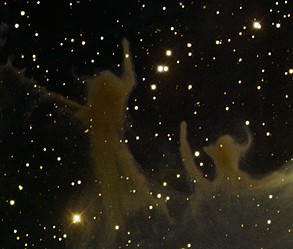 Mai jos avem nebuloasa „fantomele pe sârmă”, un inocent nor de praf insterstelar din Cepheus. Întrebarea este: fantomele stau cu fața sau cu spatele la noi?