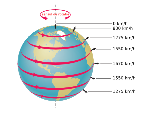 Globul pe care stăm nu se rotește nici prea repede nici prea încet. O rotație completă se face în aproape 24 de ore (23 de ore și 56 de minute) iar viteza este de 1670 km/oră, la ecuator. Doar cei care stau foarte aproape de și la polii planetei nu călătoresc în fiecare oră cu o viteză mai mare decât a unui avion comercial. Știm acest lucru prin observarea directă a cerului: toți aștrii răsar și apun, semn că de fapt noi ne rotim!