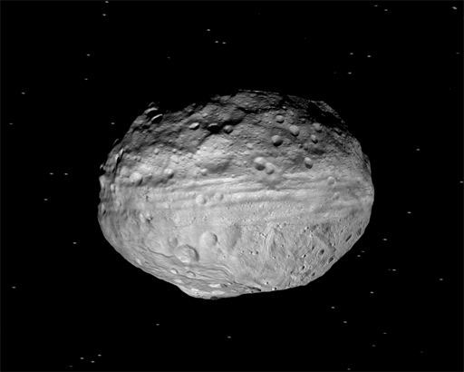 Harta de mai jos ne arată toate formele de relief mai mari de 1 km. La ecuator se întâlnesc canioane paralele care străbat întreaga circumferința a asteroidului. Polul nord (aflat sus) este în întuneric iar polul sud în lumina Soarelui.