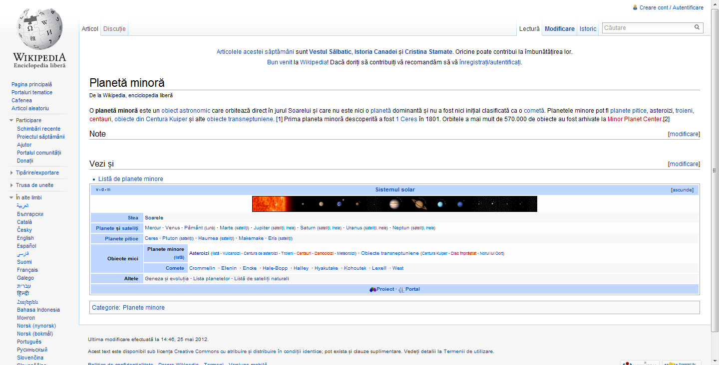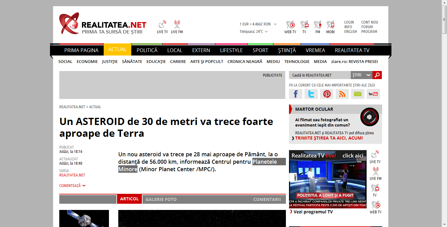 Asteroidul 2012 KP24 face știri. O eroare nostimă a apărut pe site-ul realitatea: planete minore în loc de planete mici.