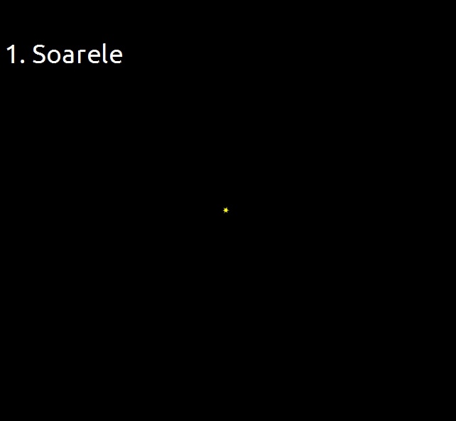 Mai întâi avem Soarele, cel mai mare obiect din sistemul solar.