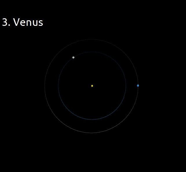 Adăugăm planeta Venus care este aliniată cu Pământul (două corpuri sunt evident aliniate unul cu altul), dar nu și cu Soarele.