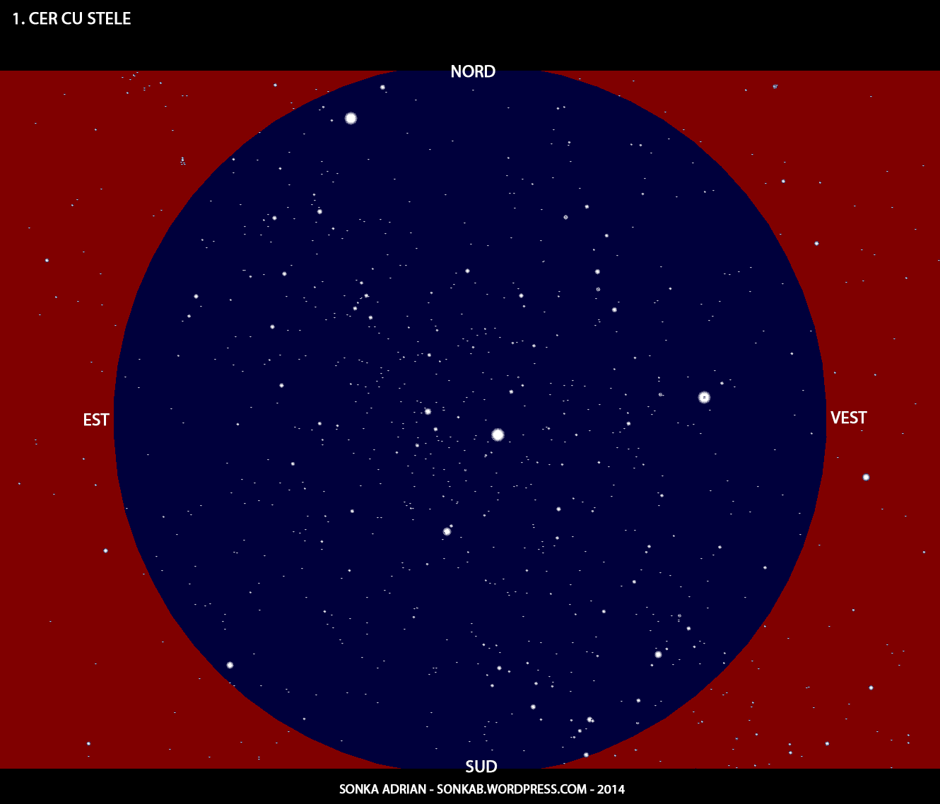 În următoarele imagini veți găsi hărți pe care treptat voi pune obiecte care nu se văd cu ochiul liber. Hărțile arată cerul în seara de 1 iulie, ora 23, din București.