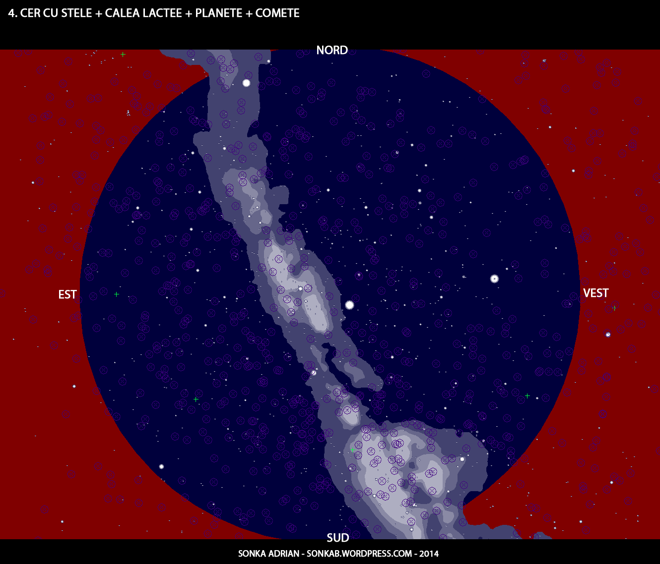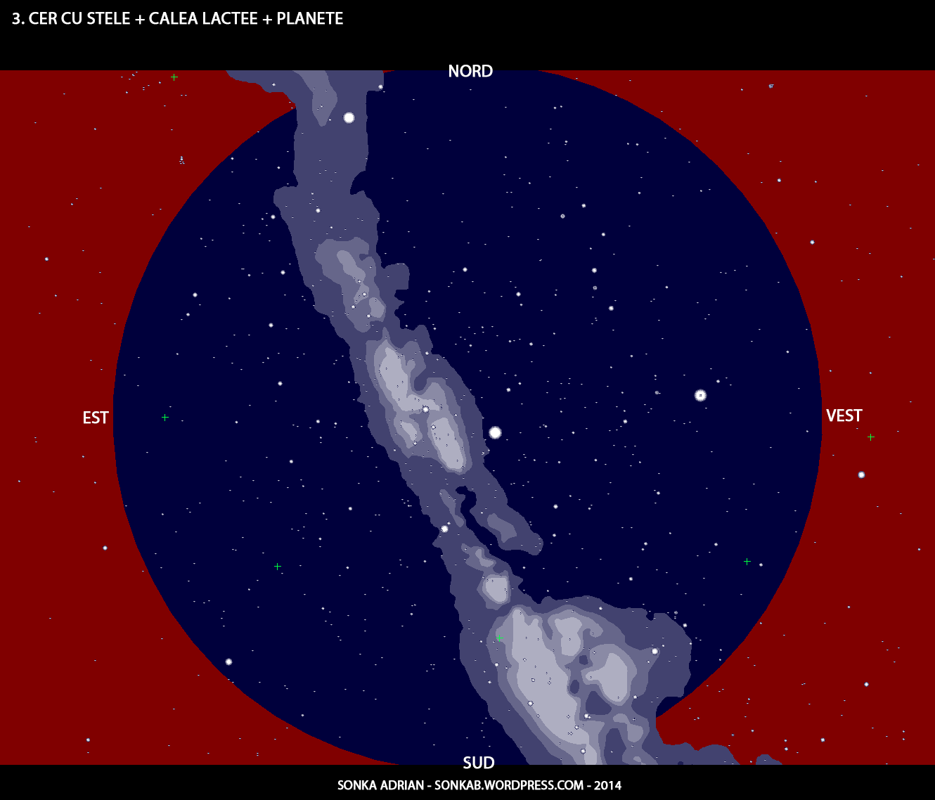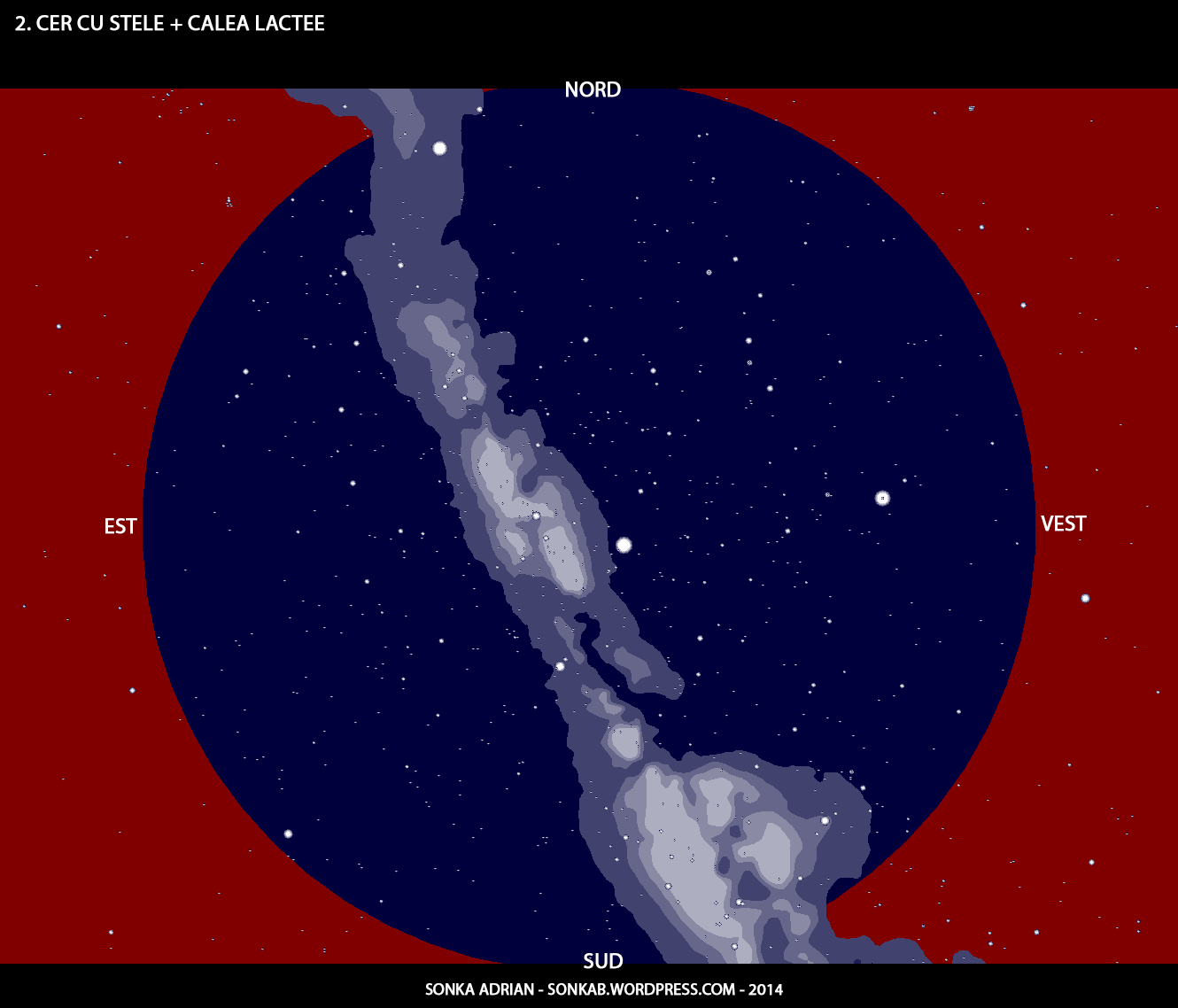 Cer cu stele, Calea Lactee, planete, comete, asteroizi, roiuri stelare, nebuloase și radiosurse - 1 iulie, ora 23