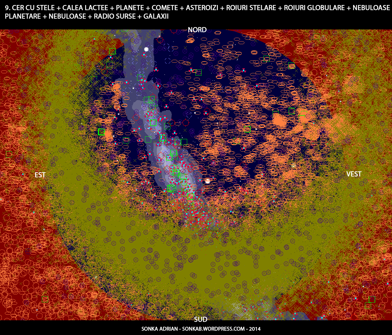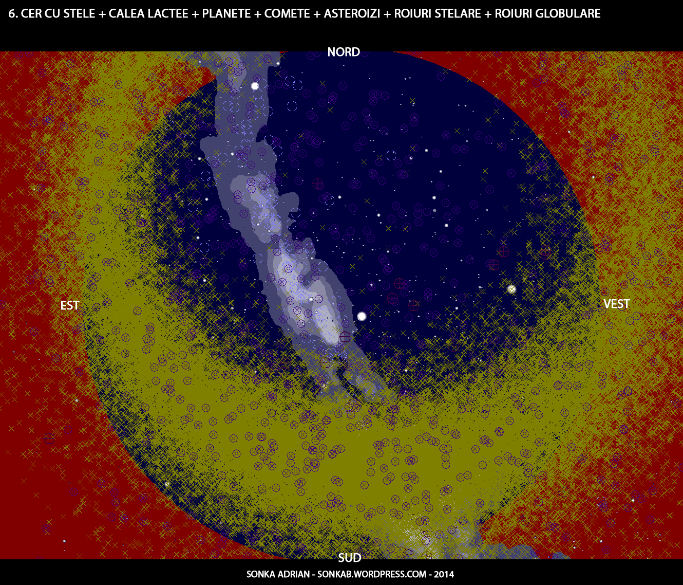 Cer cu stele, Calea Lactee, planete, comete, asteroizi, roiuri stelare, nebuloase, radiosurse și galaxii – 1 iulie,