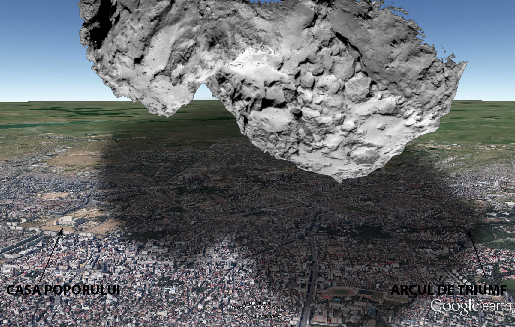 Ne uităm la o bucată imensă de gaze înghețate, amestecate cu praf, apă înghețată și cu blocuri imense de piatră, totul la temperatura spațiului, la care gheața este mai solidă decât betonul. Obiectul nu este foarte mare, având de la un capăt la altul numai 4 km.