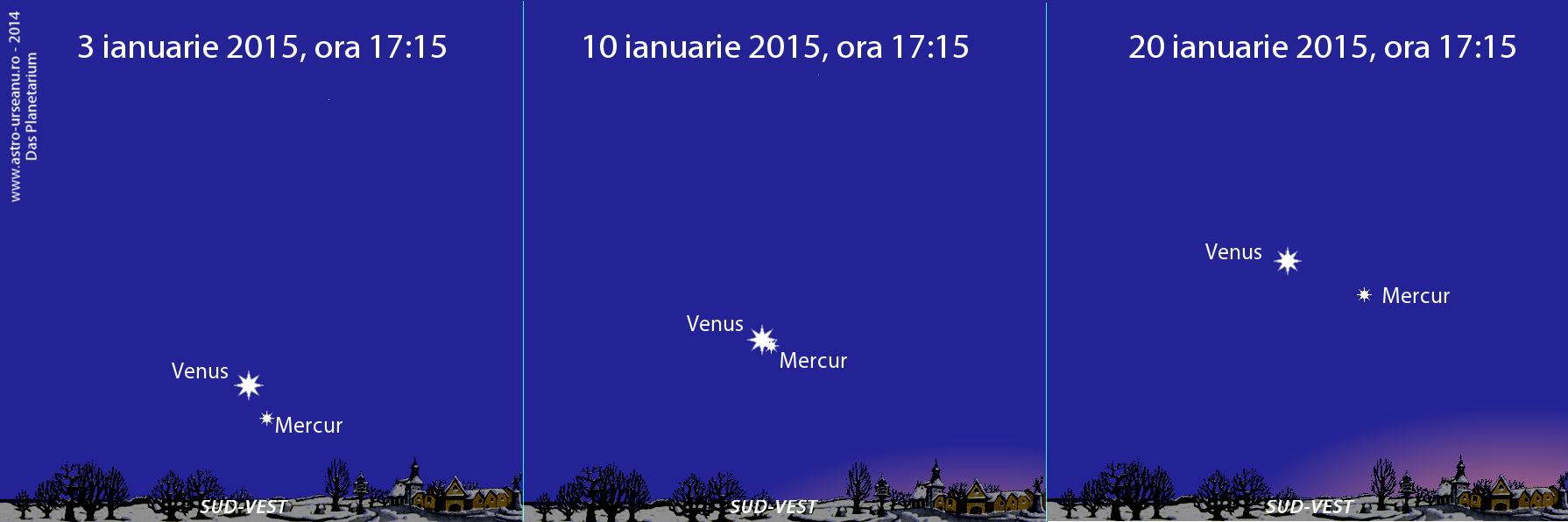 În ianuarie 2015 se va îndepărta astfel încât va ajunge lângă Venus, în ziua de 10 ianuarie. Atunci, dacă privim înspre Venus, un astru ușor de văzut, îl vom vedea și pe Mercur. Trebuie doar să fiți la ora potrivită afară, adică în jurul orei 17:15, dar nu mai târziu de ora 18.