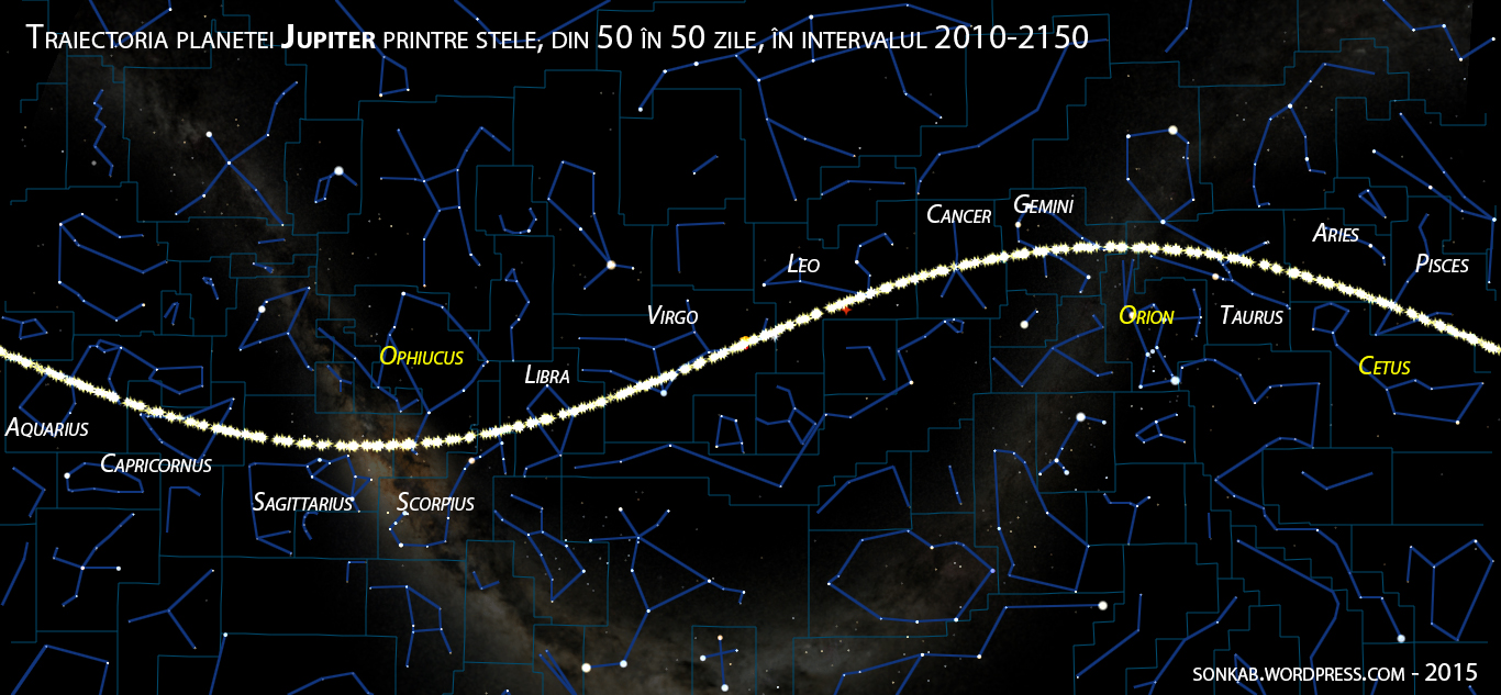 Soarele străbate de-a lungul unui an 13 constelații: Capricornus, Aquarius, Pisces, Aries, Taurus, Gemini, Cancer, Leo, Virgo, Libra, Scorpius, Ophiucus, Sagittarius.