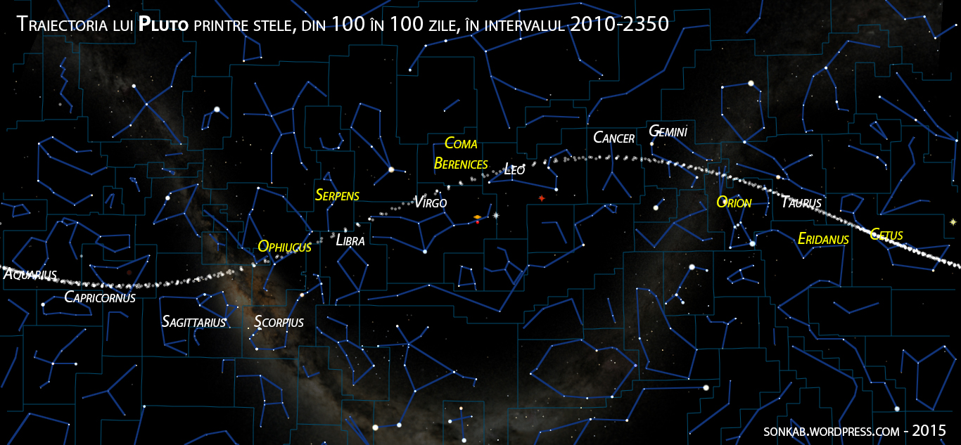 Pluto, cu o orbită destul de înclinată față de orbita terestră, traversează și constelațiile Serpens, Eridanus, Coma Berenices și Bootes, ce-i drept destul de rar. Și mai jenant pentru astrologie este faptul că acest obiect nu trece niciodată prin constelația Aries.