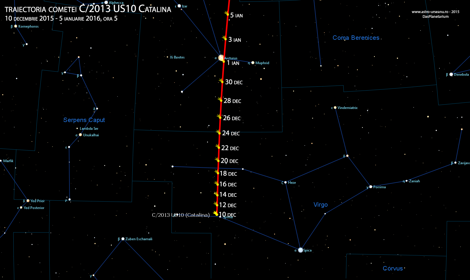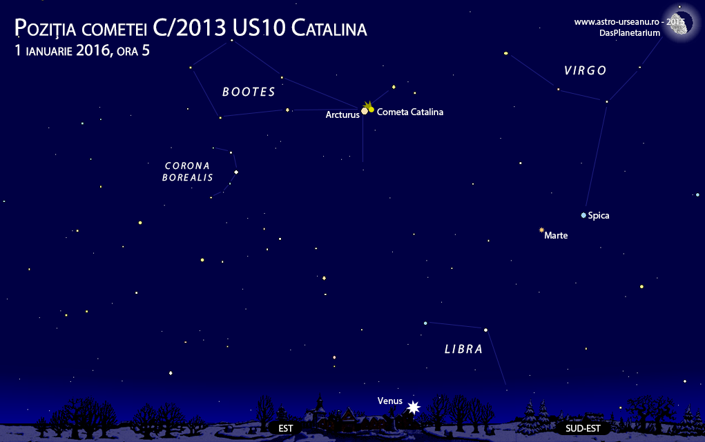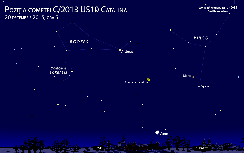 Este foarte ușor să vezi cometa Catalina (C/2013 US 10) dacă îți place frigul și dimineața. Dar cine nu se sacrifică ca să poată vedea un obiect care nu a mai fost niciodată în partea asta a sistemului solar? Cometa se vede în prezent prin binoclu și va rămâne vizibile ușor încă o lună sau ceva mai mult.