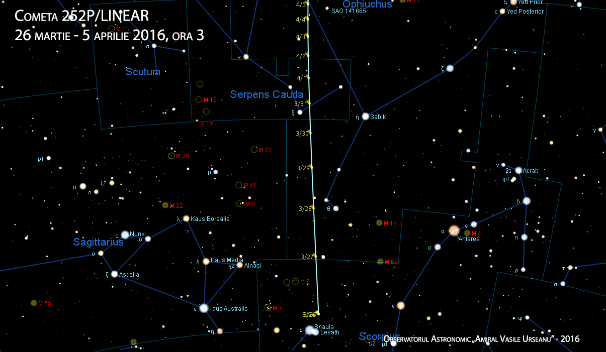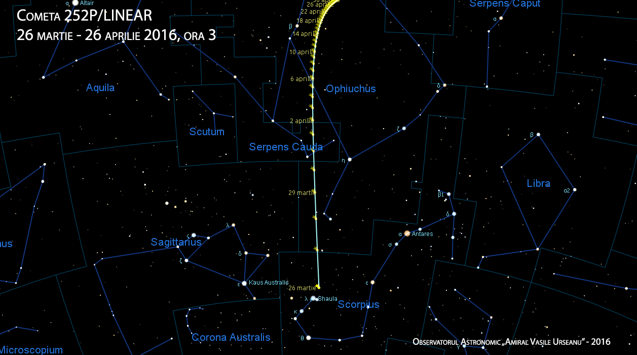 Cometa se va mișca în continuare rapid prin Scorpius, dar viteza scade, rămânând din aprilie în constelația Ophiucus.