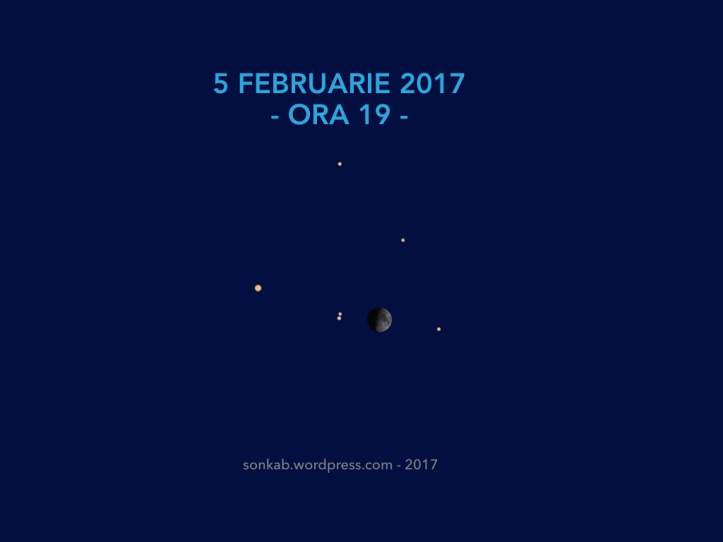 Luna o să fie în faza dintre Primul Pătrar și Lună Plină, ușor de găsit. Va răsărit pe zi, dar la ora 19 va fi sus pe cer, înspre sud.