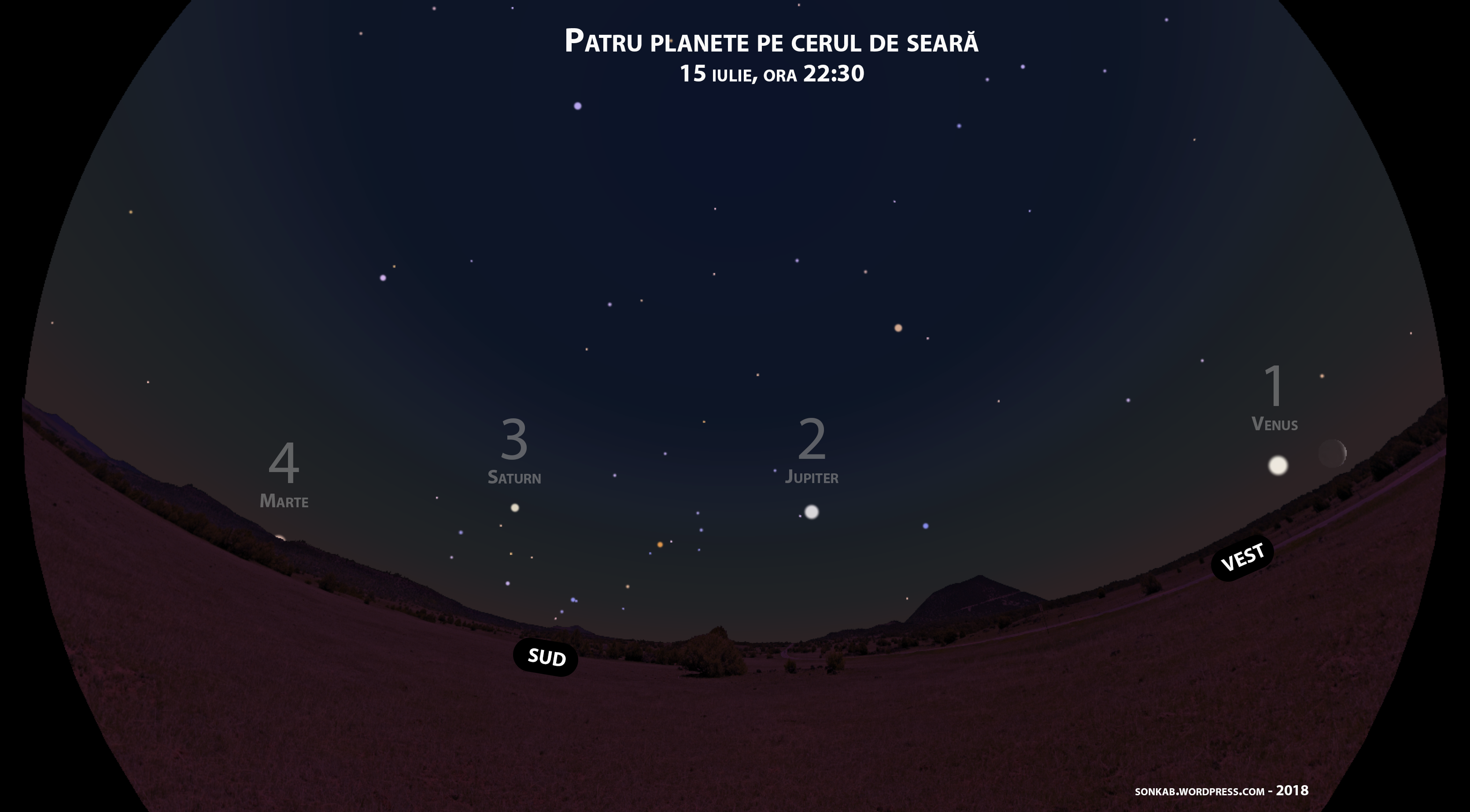 Nu v-am păcălit. În 30 de minute puteți vedea patru planete. Începeți să le căutați pe la ora 22 și ceva (maxim și 30) și veți termina în 30 de minute.