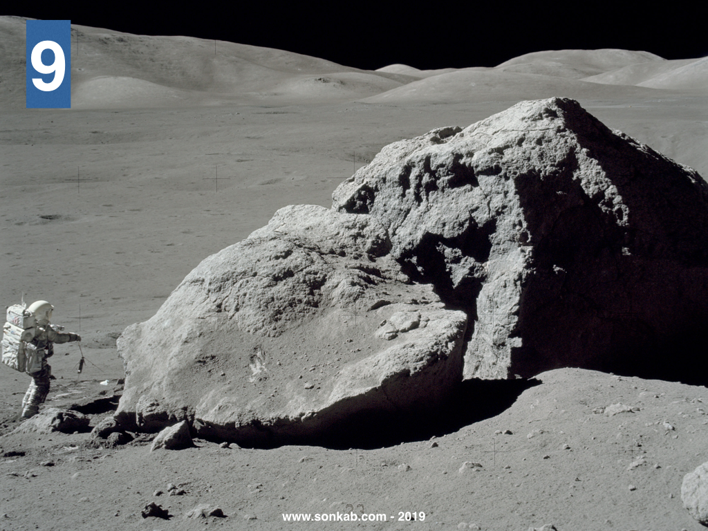 Avem de-a face cu misiunea Apollo 17 și cu astronautul Jack Schmitt care tocmai terminase de adunat câteva bucăți din bolovan, în a treia ieșire pe Lună a astronauților. Dacă te interesează mai exact data, era 14 decembrie 1972, ora 00:25, ora României. Pentru bolovan era anul 3,893 de miliarde de la formare, de când un impact (încă nu se știe care) a produs multe bucăți de roci care, în timp, s-au lipit cu o pastă formată din fragmente mici.