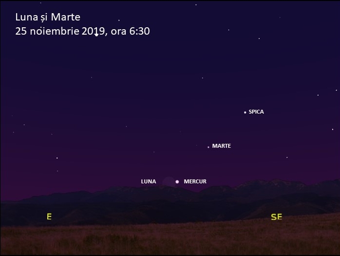 Frumusețea este că Luna va trece pe lângă Marte, cel mai aproape în dimineața de 24, când planeta se va afla sub Lună. Cu o zi înainte, Marte se va afla între Lună și orizont, iar pe 25 noiembrie undeva în dreapta sus.