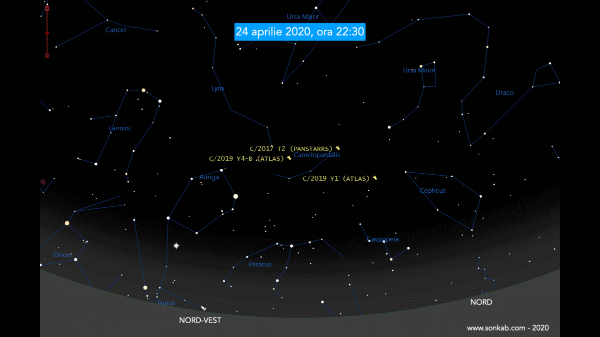 Este clar: cometa Y4 se apropie de orizont pe măsură ce se apropie de Soare, devenind din ce în ce mai greu de observat. Celelalte două comete se se ridică pe cer, din Camelopardalis spre Ursa Major, aflându-se într-o zonă de cer care nu apune. Astfel rămân toată noaptea deasupra orizontului și pot fi observate.