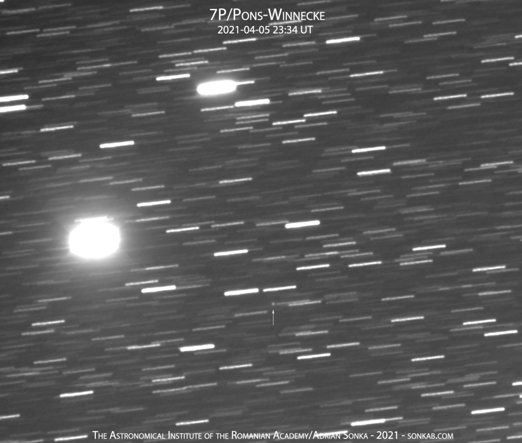 În imaginea din 5 aprilie 2021, când se afla la 117 milioane de km de Pământ și de două ori mai departe de Soare, nu pare să fie activă.