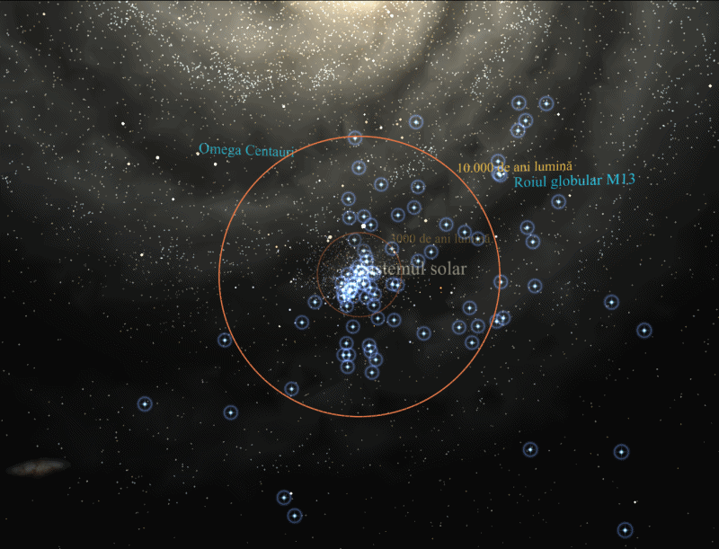 Apoi putem vedea cum se raportează Soarele la centrul galaxiei și astfel să vedem cât de departe suntem de el. Așa am aflată că ne aflăm la 25.800 de ani lumină de acesta, mai aproape decât se știa (27.700 de ani lumină). Nu e panică. Toate distanțele astronomice au o marjă de eroare!