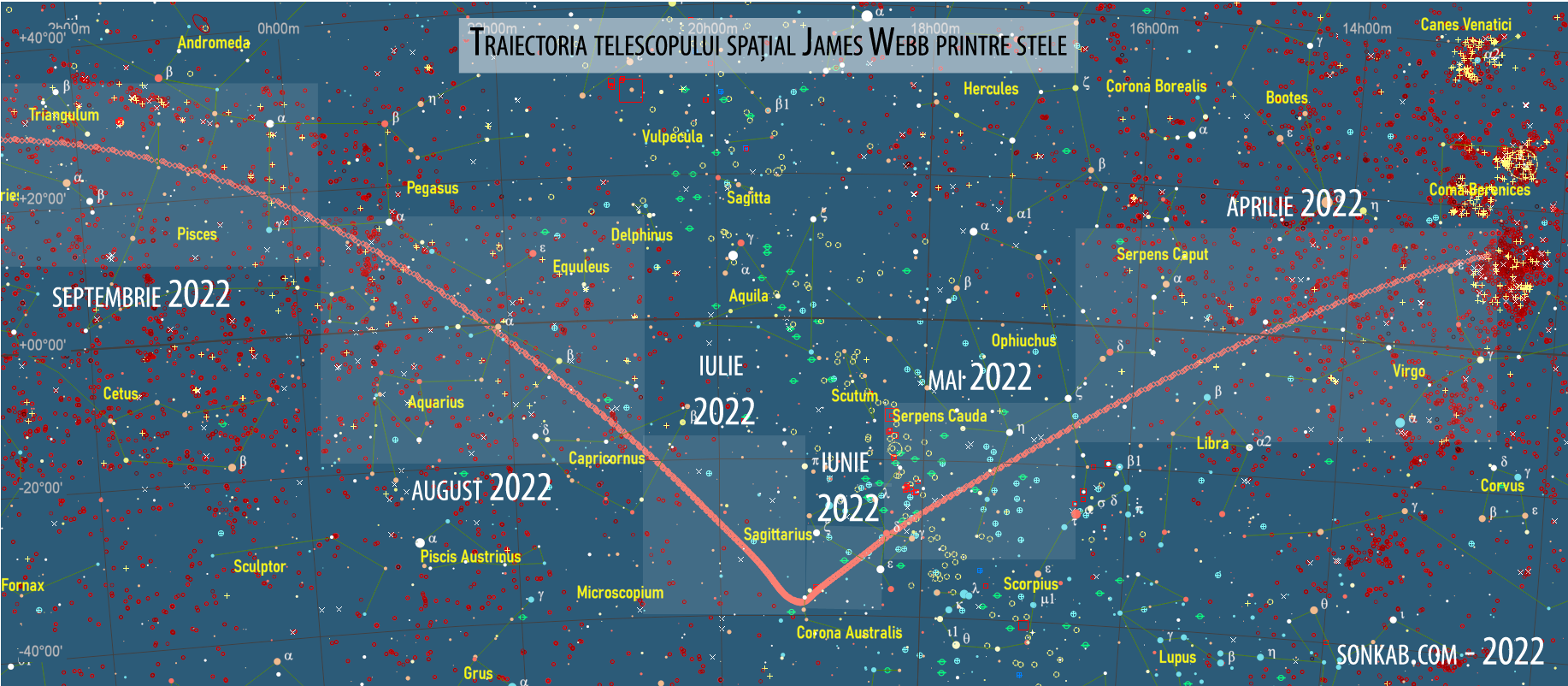 Traiectoria telescopului printre stele arată că în lunile iunie și iulie se va putea observa cu greu, la doar câteva grade deasupra orizontului.