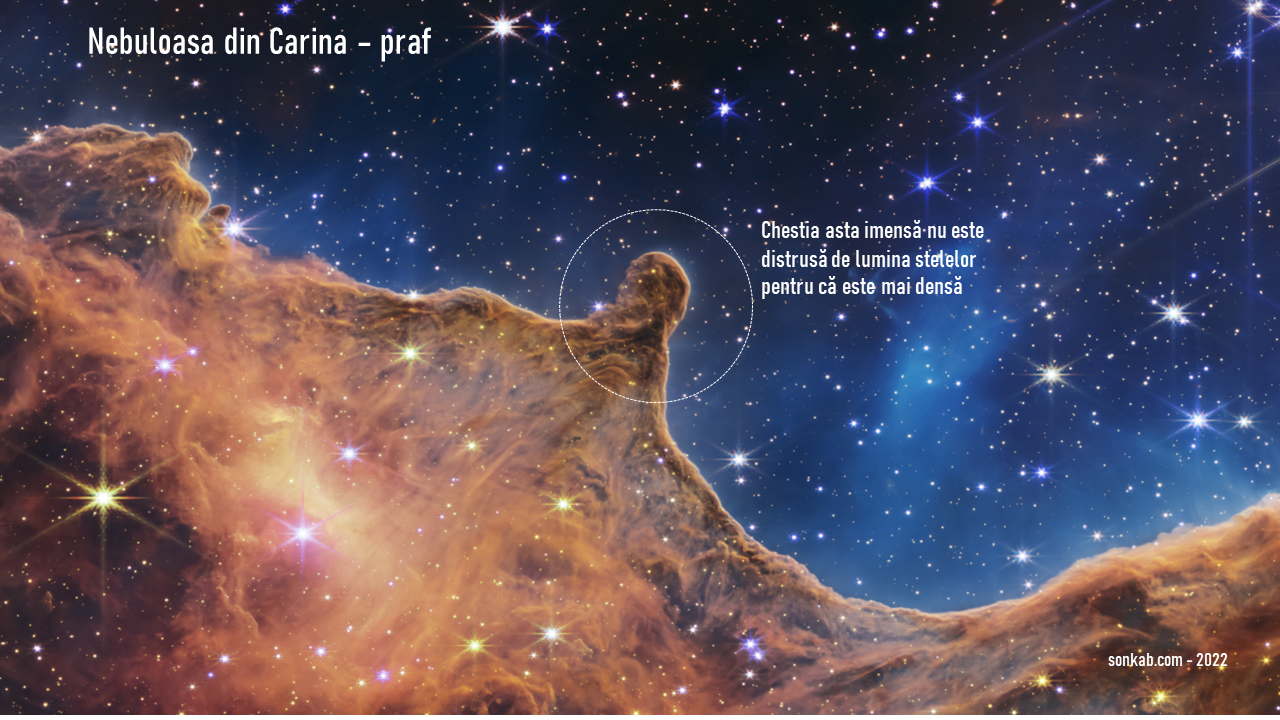 Din praf se formează chestii din praf, precum asteroizi, comete, planete, girafe și tot ce este pe ele, dar în nebuloasă vedem praf care încă nu s-a adunat sub formă de nimic.