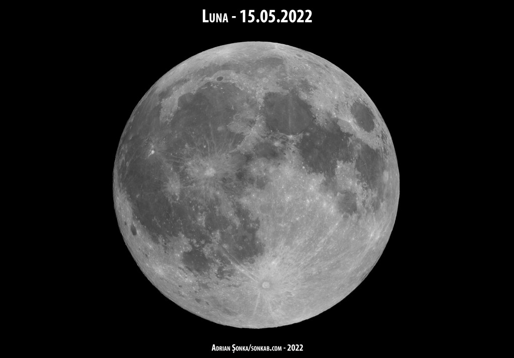 În aprilie au fost nori, dar în mai a fost senin. Păcat că Luna Plină get beget nu s-a putut vedea din România, din cauză de motiv de oră. S-a produs la ora 15:31, când era zi cu Luna sub orizont.