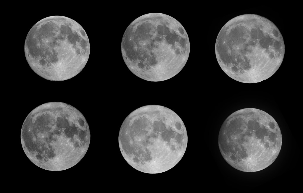 Ar putea părea că toate Lunile Pline sunt la fel, dar dacă le privești îndeaproape vei vedea diferențe mari, toate aflate la marginea Lunii.