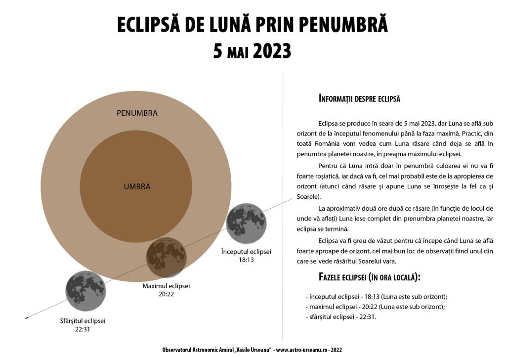 […] 7. Astronomul Adrian Sonka a publicat un ghid despre fenomenele astronomice care vor fi vizibile pe cer în anul 2023. Printre ele se numără o cometă, planeta Venus sau o eclipsă de Lună prin penumbră care va fi vizibilă în 5 mai. (Adrian Sonka) […]