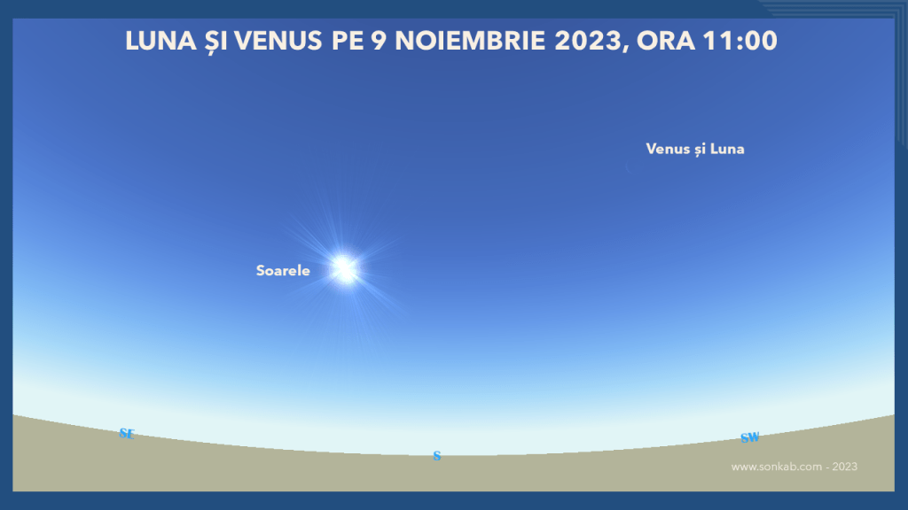 Ai șansă să o vezi pe Venus în timpul zilei. Caută Luna pe la ora 11 și privește-o cu un binoclu. Se va afla înspre sud-vest.