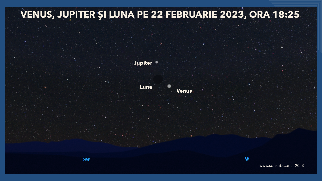 Venus și Jupiter se află aproape una de alta pe cer. Formează un astru dublu pe 1 și 2 martie. Nu se vor vedea ca o stea, ci ca două, cu Venus mai strălucitoare decât Jupiter.