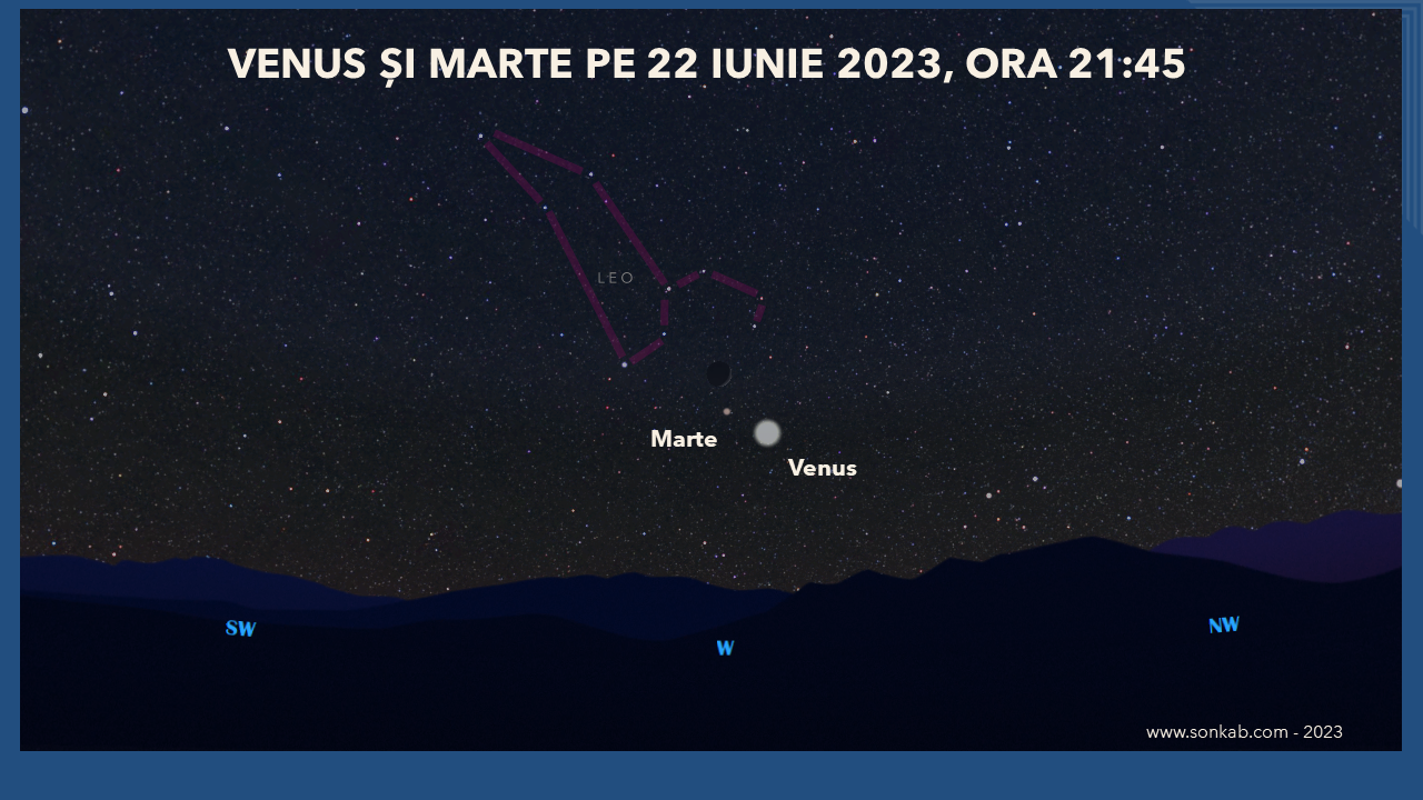 Secera Lunii, Venus și Marte se întâlnesc seara pe cer. Nu departe de ele se va afla steaua Regulus, cea mai strălucitoare din constelația Leo.