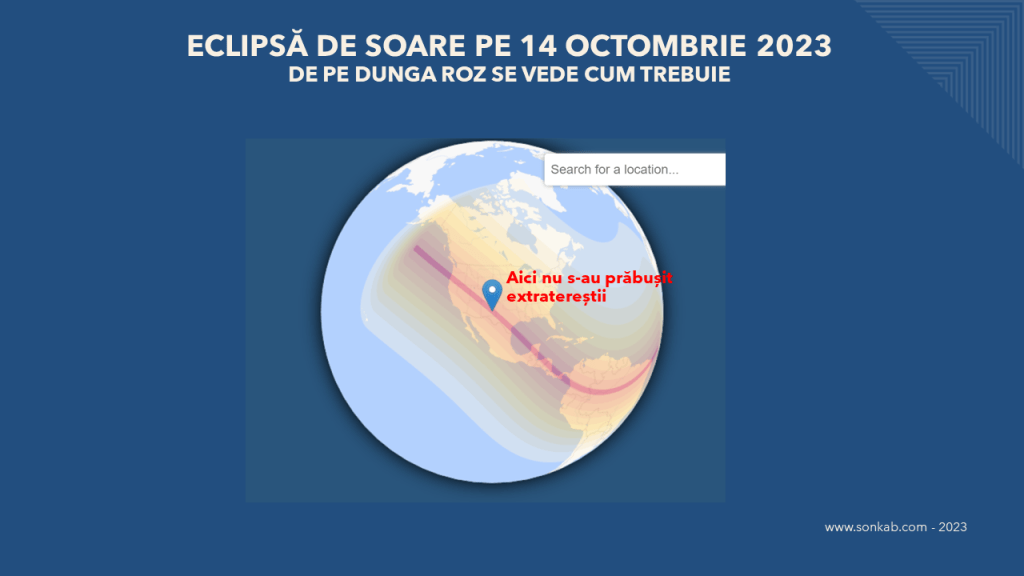 Totuși, dacă o iei în serios, să știi pe 14 octombrie se produce o eclipsă de Soare vizibilă din America, din Roswell, New Mexico.