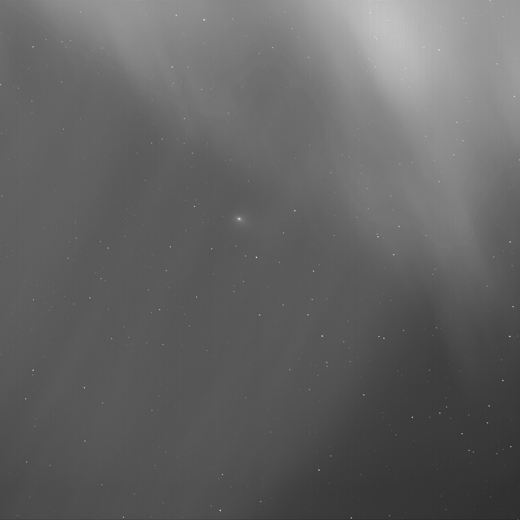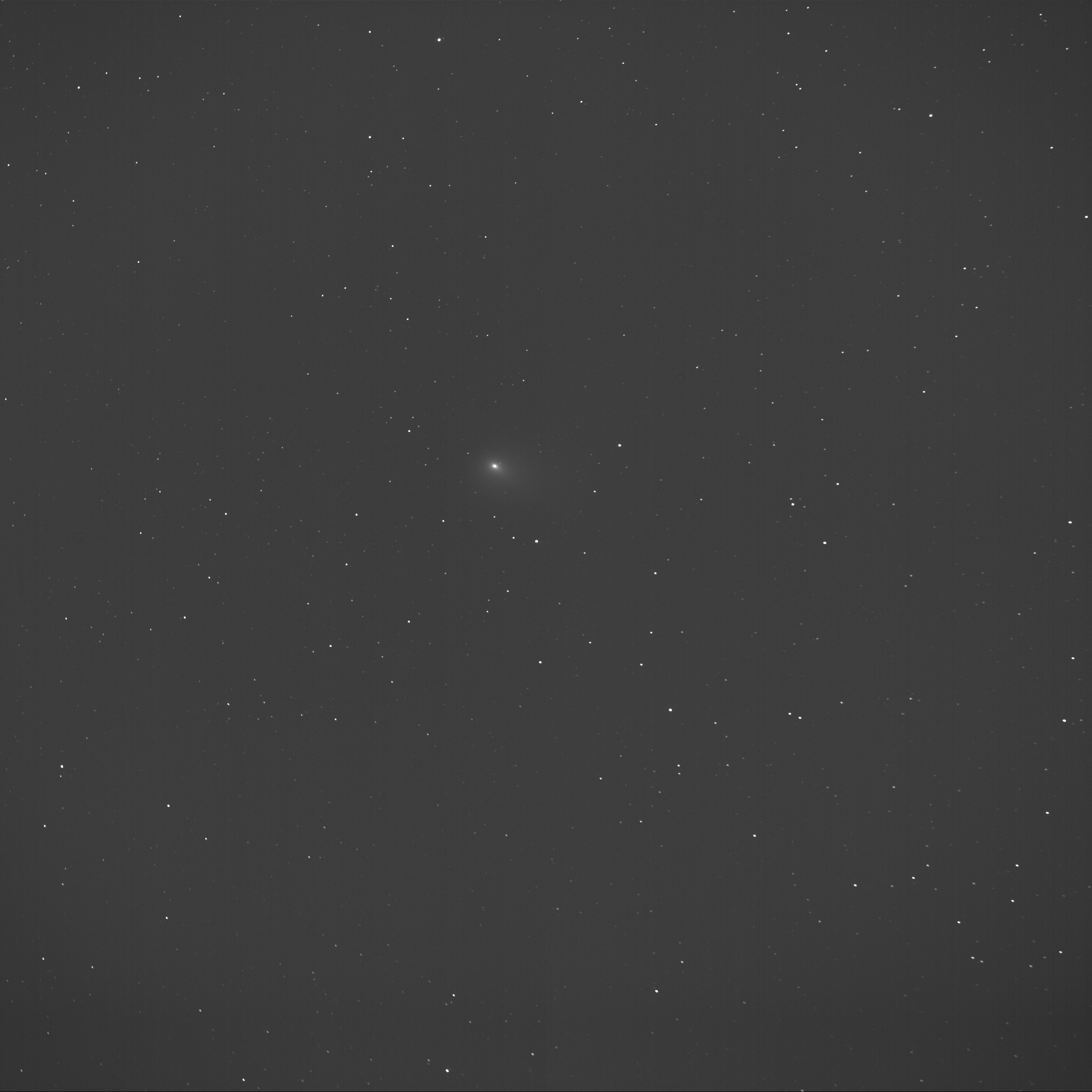 Mai jos se vede o imagine brută, luată cu un telescop de 30 cm în diametru, cu expunere de 2,5 s. Cometa este pata difuză din centrul imaginii.