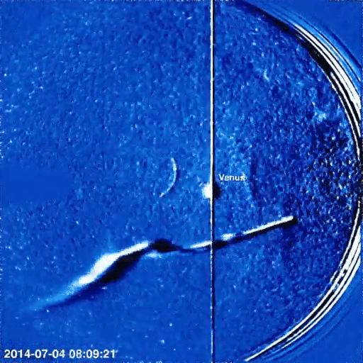 A fost văzută în imaginile luate cu telescopul spațial solar Stereo-A, aflat atunci cumva în spatele Soarelui față de Pământ.