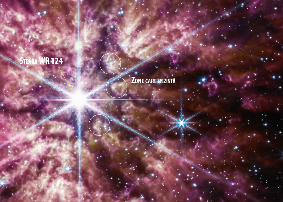 Zonele care rezistă sunt mai dense decât restul norului din jurul stelei WR 124