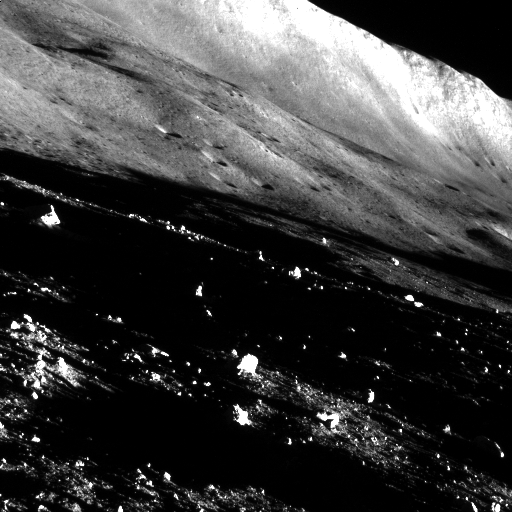 Se vede clar cum este the golden hour pe Lună: se văd doar vârfurile pietrelor și marginile craterelor.