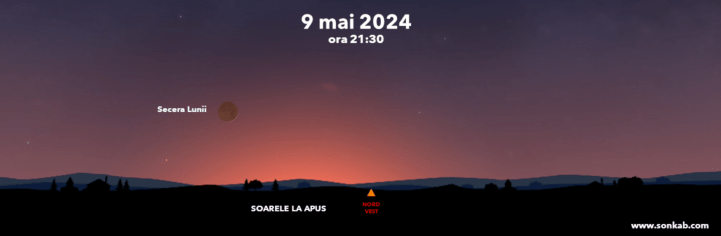 Privește în seara aia înspre apus pentru că nu foarte departe de acest loc se va afla și secera. Observația este mai grea decât cea de pe 5 mai pentru că Luna este mai aproape de lumina Soarelui care apune!