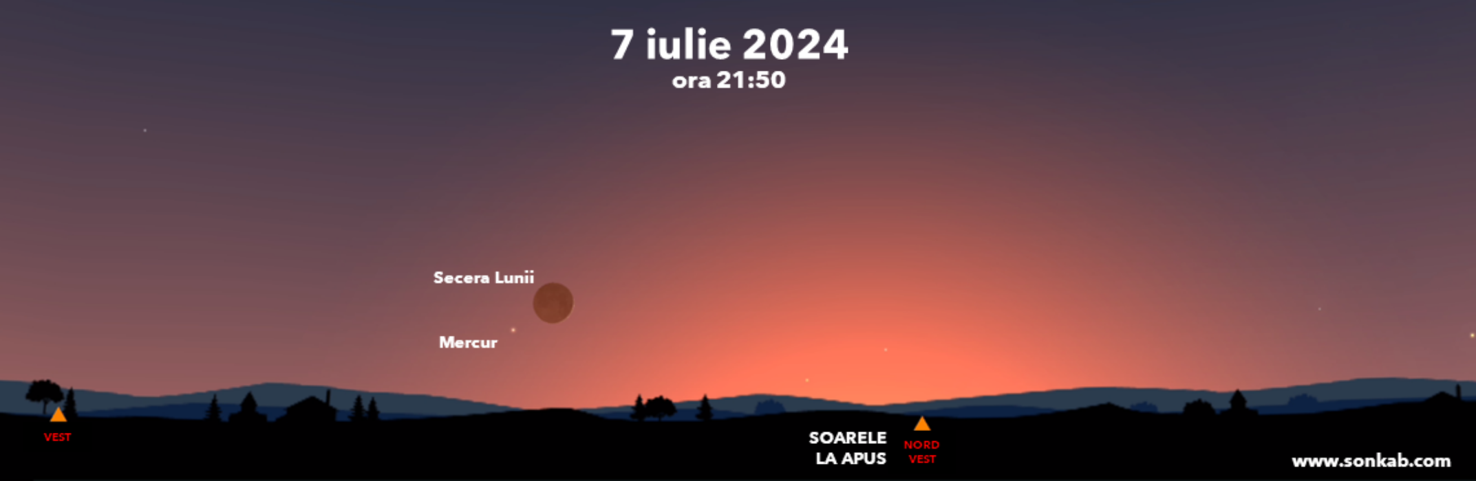 Privește chiar în lumina apusului pentru că la stânga, nu foarte sus față de orizont se va vedea o seceră de toată frumusețea.