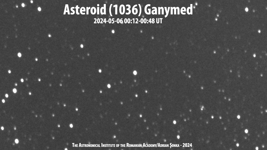 L-am prins în imagini în noaptea de 5 spre 6 mai, când se mișca prin câmpurile bogate în stele din constelația Aquila. În imaginea de mai jos se vede ca o dâră.