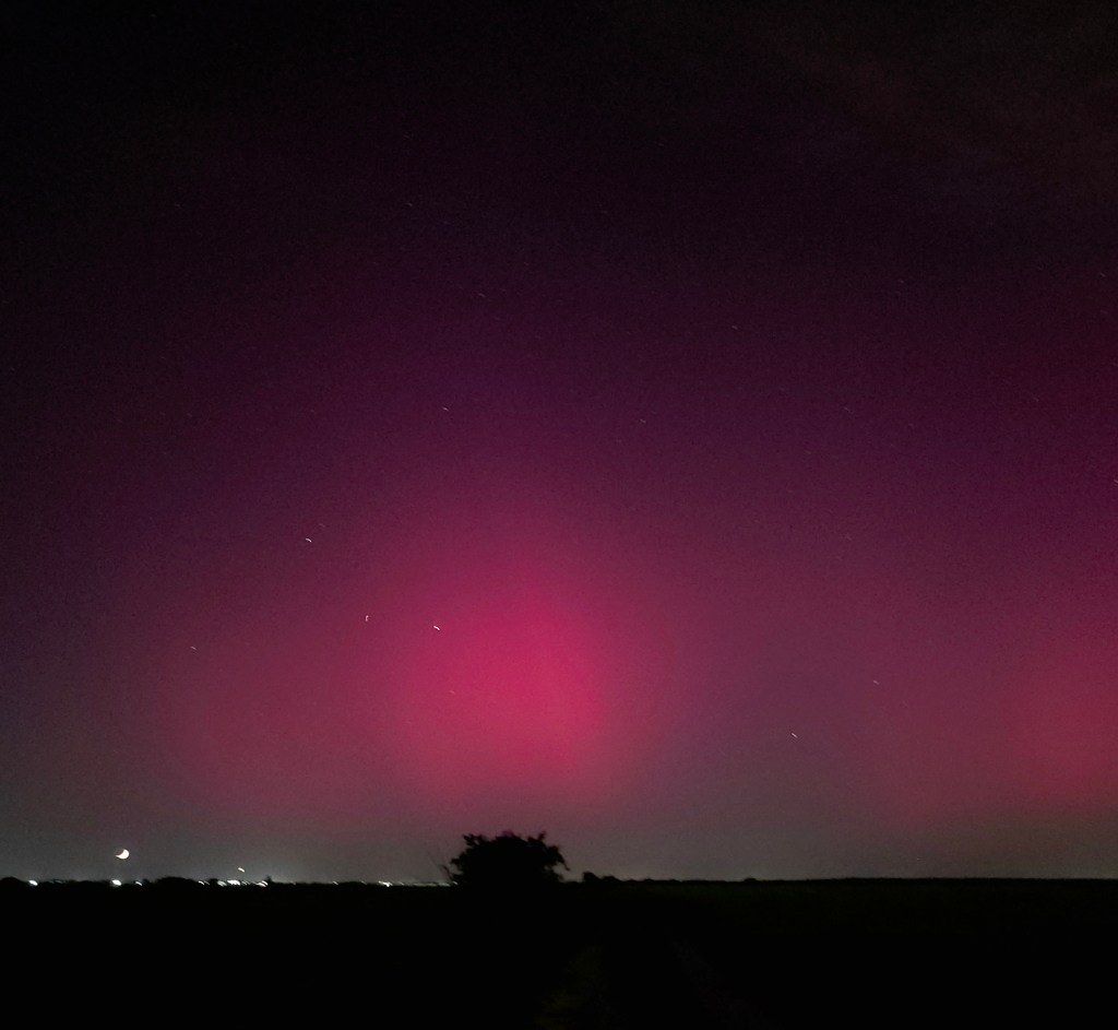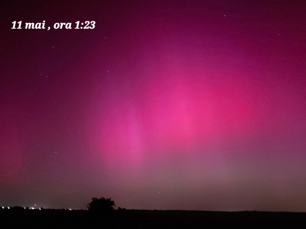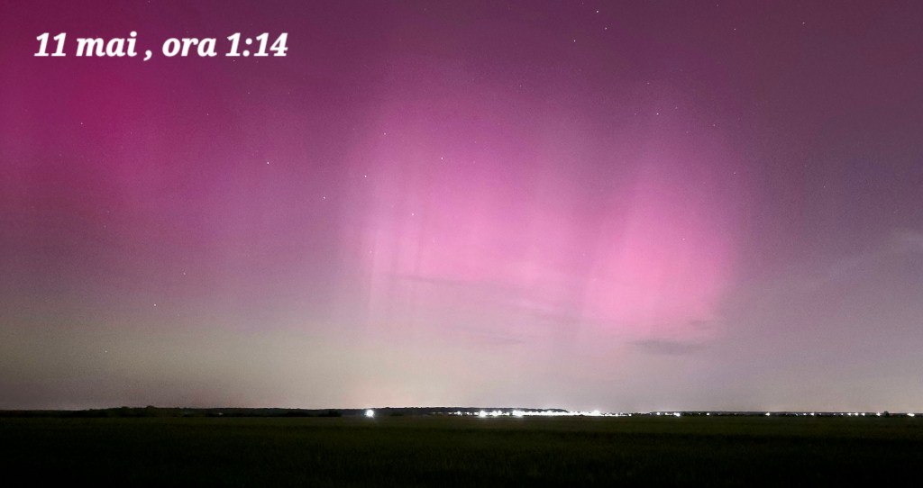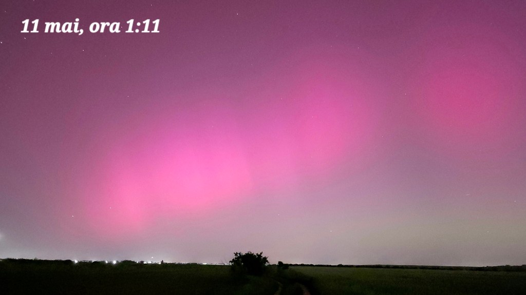 În noaptea de 10 spre 11 mai aurora boreală s-a văzut în reprize. A fost un moment bun la începutul nopții, o pauză de o oră și o izbucnire începând cu ora 1 dimineața. De la ora 1:50 s-a mai liniștit, dar cerul din nord a rămas cu un fundal roșu și verde mai aproape de orizont.