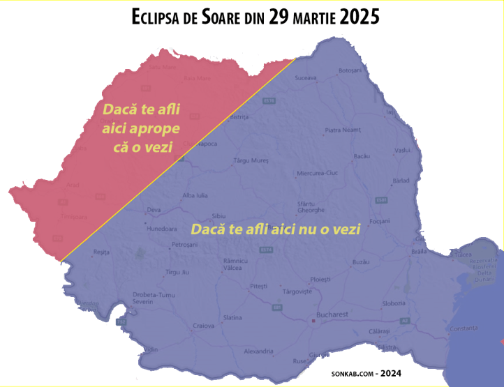 […] 10. Astronomul român Adrian Șonka a publicat un ghid cu principalele evenimente astronomice ale anului 2025. Unul dintre cele mai interesante va fi eclipsa parțială de Soare din 29 martie, care va fi vizibilă și din partea de nord-vest a României, inclusiv din Timișoara, Arad, Oradea sau Satu Mare. (Sonkab) […]