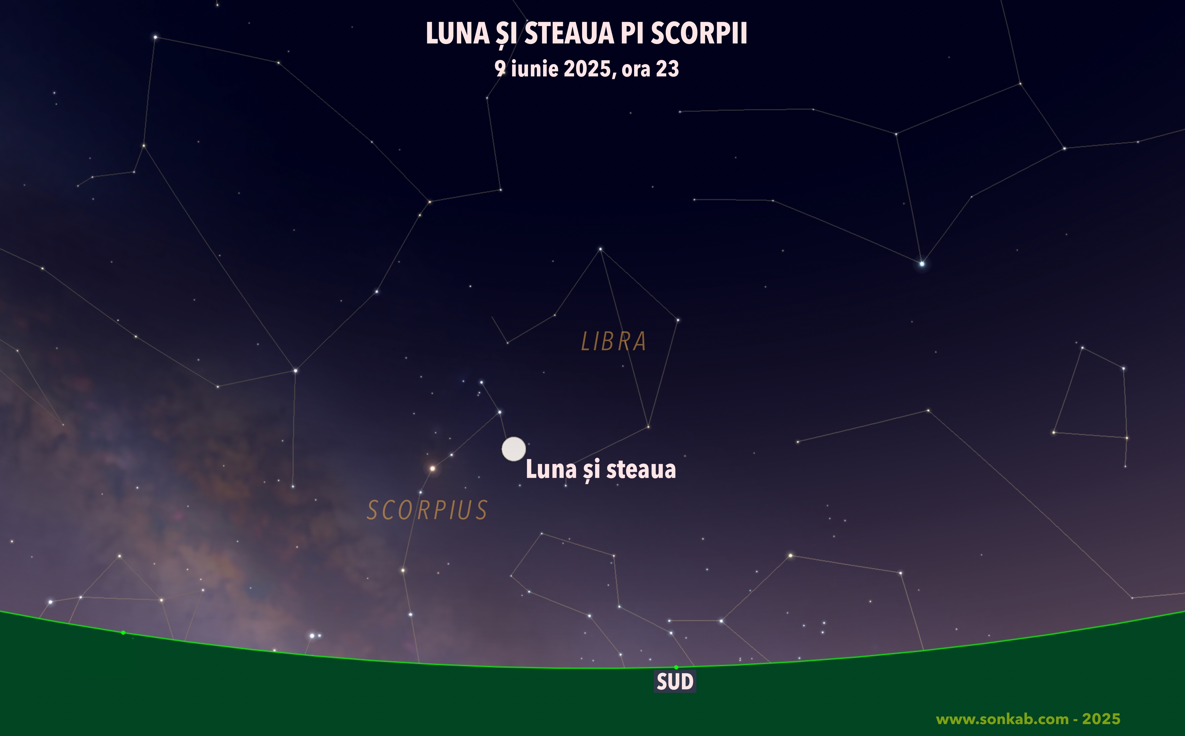 În noaptea de 9 spre 10 iunie Luna va trece peste o stea din constelația Scorpius.
