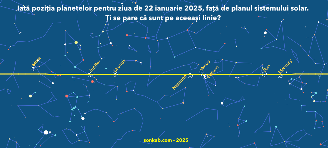 Nici anul 2025 nu este scutit de o asemenea știre senzațională, lunile ianuarie și februarie fiind cele în care se aliniază planetele. Cică la sfârșitul lui ianuarie se aliniază cinci planetele, dar pe 28 februarie cerul se va sparge când se vor alinia șapte.