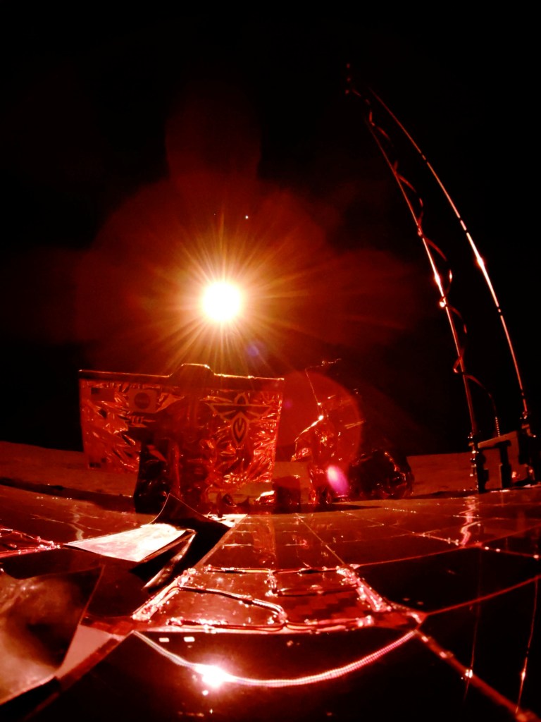 Totul este roșu atunci. Praful selenar, dealurile și craterele sunt toate scăldate în lumina roșie care vine de la Soare via atmosfera Pământului.
