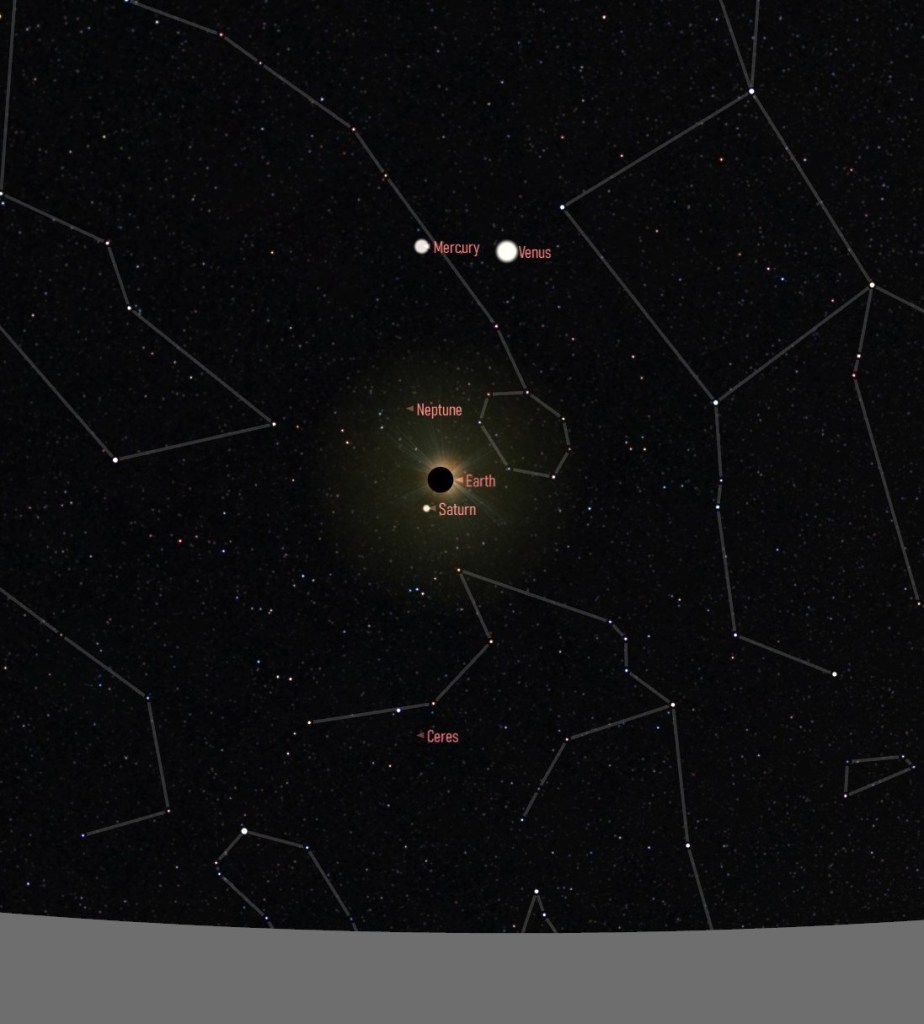 Imaginea este mai sus. Lumina strălucitoare este combinația Pământ-Soare. Cele două stele de deasupra sunt Venus (cea strălucitoare) și Mercur. În planul apropiat se văd panourile solare ale sondei, iar în depărtare se vede peisajul înroșit.