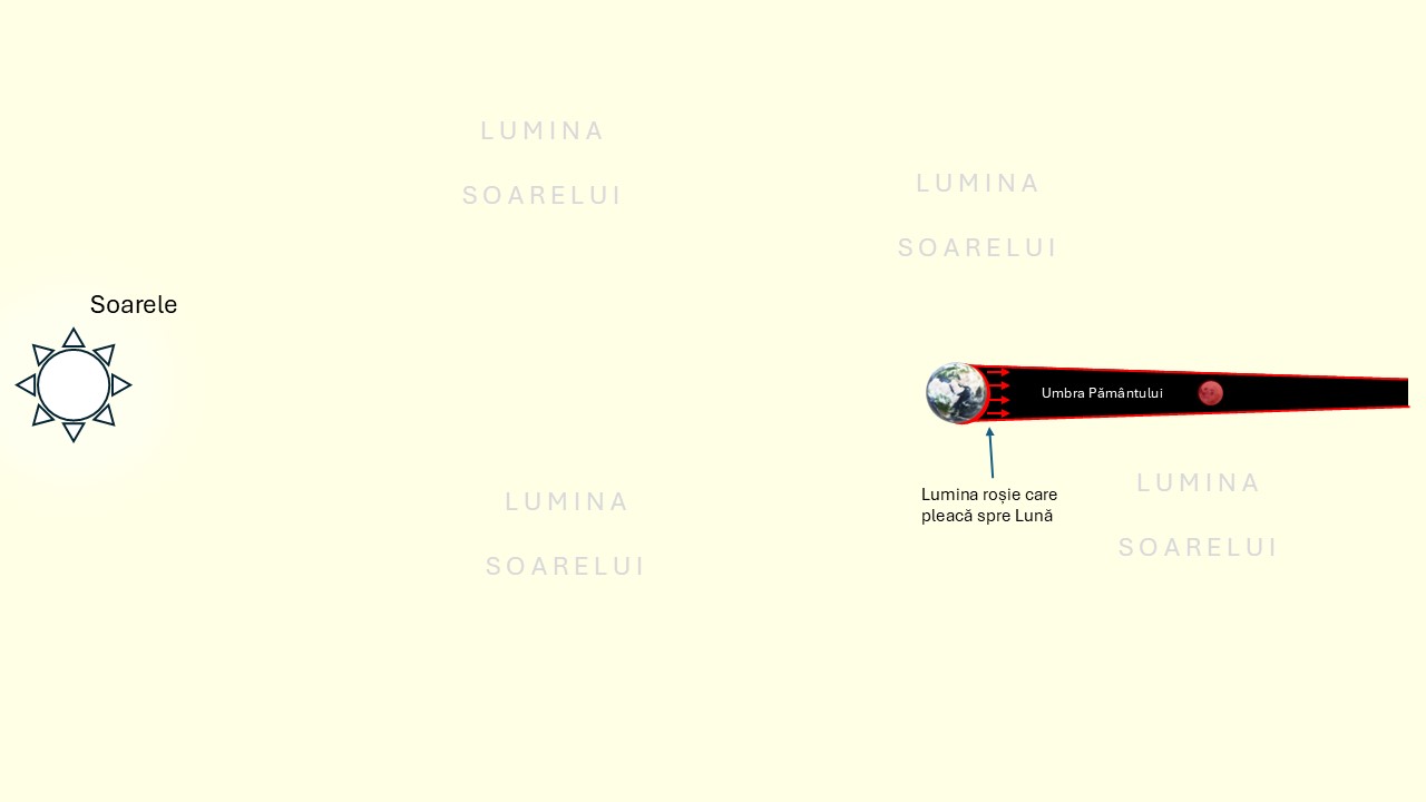 Singurele raze de lumină care ajung în acel moment pe Lună sunt cele care trec prin stratul subțire de aer care înconjoară planeta noastră, cele care trec prin atmosferă.