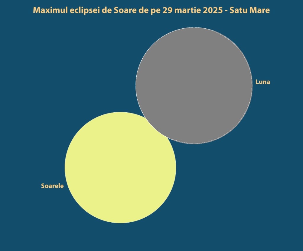 Din zona din care se vede cel mai bine, Satu Mare, Soarele va fi acoperit în proporție de 0,84%, adică foarte puțin, aproape insesizabil.