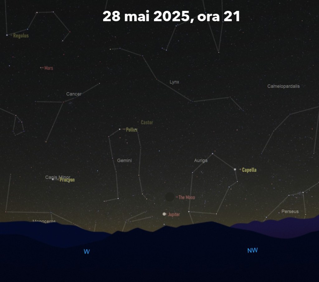 | 5 | În această seară Luna se va afla în preajma stelei Regulus din constelația Leo |